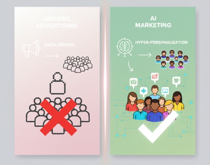- Google Gemini. (2026). Infografía comparativa de Marketing Genérico vs. Marketing con IA en tonos rosa y verde [Imagen generada por IA]. https://gemini.google.com/